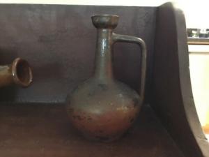 antique Primitive Brown Stoneware Pottery Pitcher Jug Unique Design