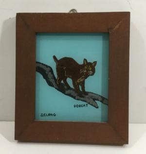 Pennsylvania Folk Art Reveres Glass Painting Of A Bob Cat By J.F. Long