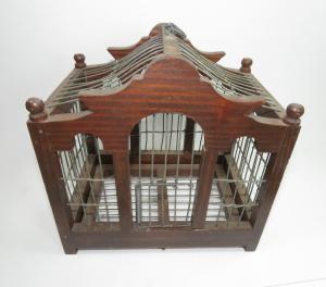 Vintage Primitive Wood and Wire Hand Made Bird Cage Dome Roof