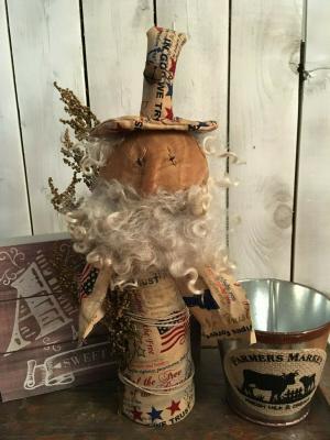 Primitive Doll Uncle Sam Doll Folk Art Cupboard Tuck Tree Topper USA Fabric Star