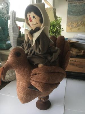 Primitive 14” Pilgrim Doll Riding Turkey on Candlestick by Erikascupboard