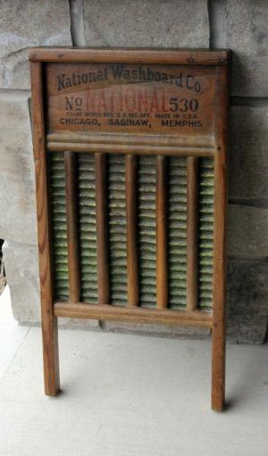 VINTAGE NATIONAL WASHBOARD COMPANY THE GLASS KING #860 WOOD & GLASS WASHBOARD