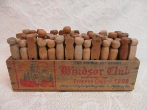 Antique Wooden Clothespins Windsor Cheese Box Country Farmhouse Laundry Decor
