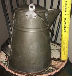 Antique Tin Coffee Pot Tinsmith Cowboy Country Kitchen old copper/brass? base