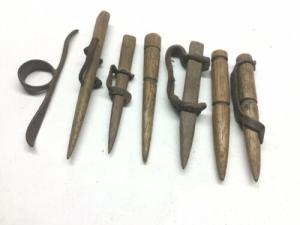 Antique 7pc. Lot Of Wood And Leather And 1 Metal Corn Huskers Or Picks