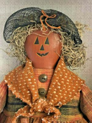 PRIMITIVE FOLK ART HALLOWEEN PUMPKIN HEAD DOLL, PIG PEN HILL, ELAINE RUSSELL