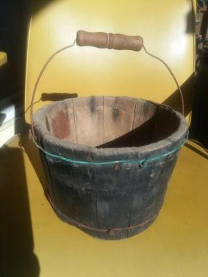 Antique Wooden Firkin Sugar Bucket Wire Swing Handle 12 1/2" Tall