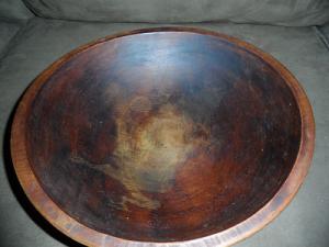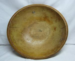 PRIMITIVE WOOD DOUGH BOWL HAND PAINTED SIMPLE DECORATED 13.5 x 12.75