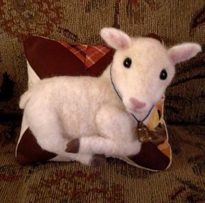 Primitive Antique Quilt Needle Felted Sculpted Wool Lamb Baby Sheep Pillow