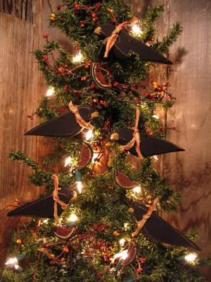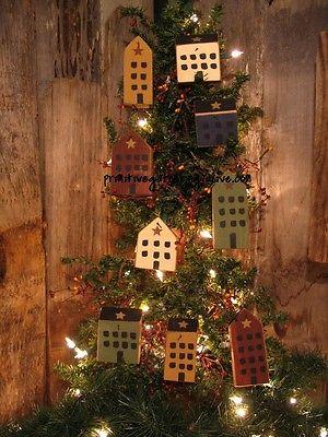 ~ 9 Primitive Wood Folk Art SALTBOX HOUSE Star Ornaments Ornies OOAK BY HSC