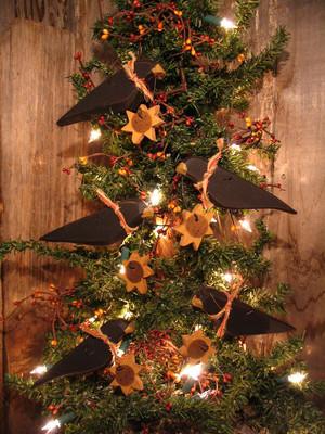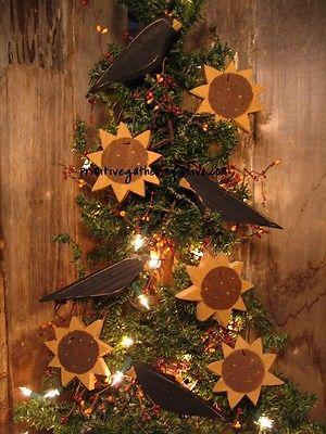 ~ 9 Primitive Farmhouse GARDEN HaRVeST BLACK CROW SUNFLOWERS Folk Art Ornies