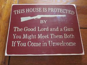 Primitive decor Wood Sign: "This House is protected by....." Burgundy Rustic