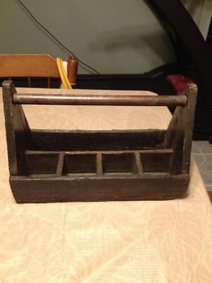 Antique Primitive Wood Carpenters Tool Box Carrier Tote 6 Divided Cubby's AAFA