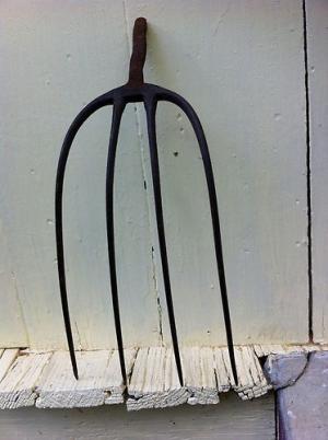 VINTAGE Barn Find Primitive 4 Tine Head Pitchfork Farm Tool