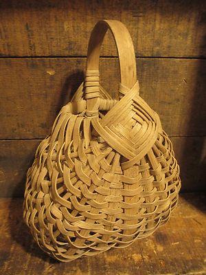 Antique Americana Split Oak Buttocks Farm Egg Berry Basket w/ FEET 16 Rib