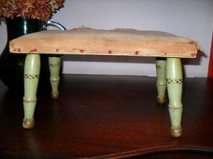 Antique Primitive Handmade Wooden Footstool Original Paint Hand Stenciling