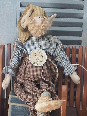 PRIMITIVE GRUNGY SANTAS HELPER POPPY ELF DOLL RUSTY BELL*TAG*LT.BLOND WOOL BEARD