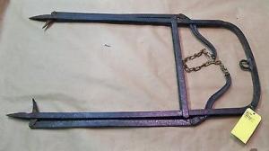 Large Antique Iron Claw Hay Fork Old Vintage Barn Trolley Spear Farm Tool (2)