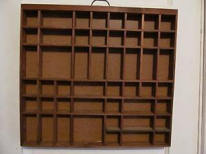 antique vtg wood wall shelf trinket printer drawer knick knack 98 spaces 22x16