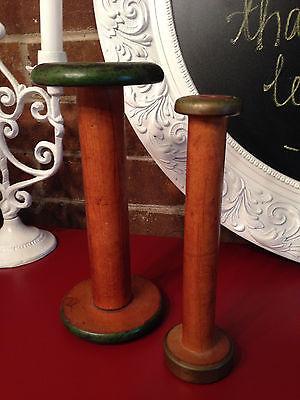 Lot~2 Antique Wood Spools~Industrial Age~Textile Mills~Wooden~Primitive~Vintage