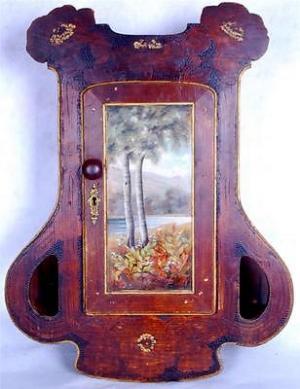 Antique Folk Art Carved Painted Cupboard Cabinet