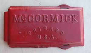 VINTAGE MCCORMICK HORSE DRAWN HAY MOVER CAST IRON TOOL BOX COVER ADVERTISING