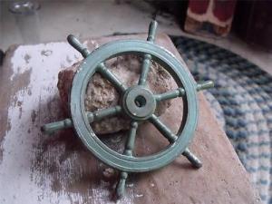 Primitive Vintage Metal Ship Wheel Paperweight 3/4 lb Heavy Shabby Green