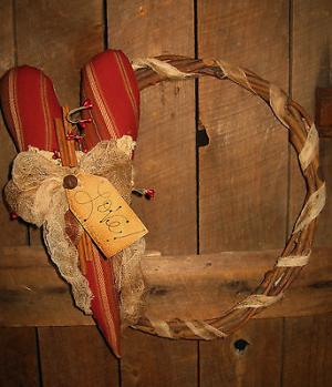 PrimiTive GruNgy VALENTINES Red HEART LOVE TaG Door GreeTer Wreath DecoraTion