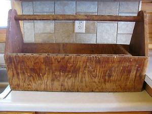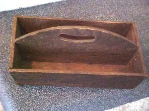 ANTIQUE HANDMADE PRIMITIVE WOOD TOTE/CADDY WITH CUT OUT CARRY HANDLE