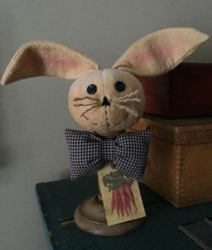 Primitive Bunny Rabbit Make-Do on Vintage Candlestick~Handmade by The Bean House