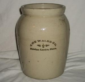 Antique Stoneware Crock THE WALES CO. NEWTON CENTRE, MASSACHUSETTS Original