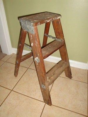 Vintage Wood 2 Step Folding Ladder Stool Steps tool A Frame Style