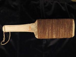 Attractive 13 3/4" Primitive Wood Carved Paddle w/ Twine Texture, Ready To Hang