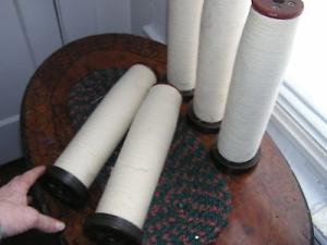 4pc. VINTAGE WOOD SPOOL/BOBBIN~WITH THREAD OLD ~RUSTIC DECOR