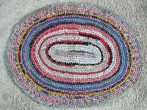 Vintage Hand-Stitched Crocheted Rag Rug..23" x 30"..Old Rag Rug..Oval Rag Rug
