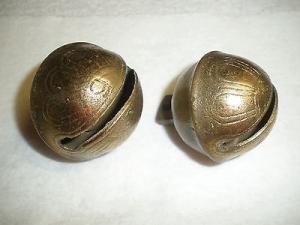 Lot ANTIQUE VTG # 2 BRASS CHRISTMAS SLEIGH BELL Old Horse Bell 1800's Petal B