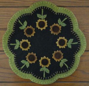 pRiMiTiVe Fall Wool Sunflowers Penny Rug~Candle Mat~Fall~Autumn~Folk Art~