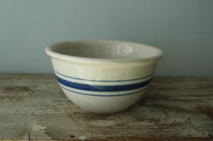 early / old stoneware bowl with blue bands #1 of a nest of 2