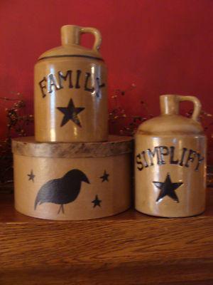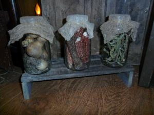 Primitive Early Look Riser - Set of (3) Pantry Jars w/ Dried Goods Gathering