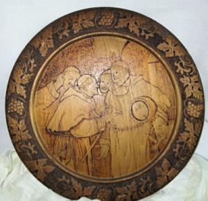 Primitive Antique Intricately Carved Wooden Bread Board or Tray