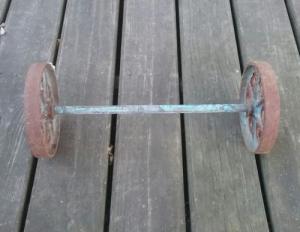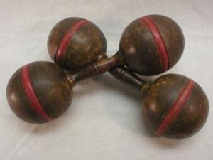 Antique Wood 2 Pound Barbells Red Paint Decorated Pair