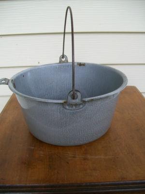 ANTIQUE ~PRIMITIVE RARE GRAY ENAMELWARE POT