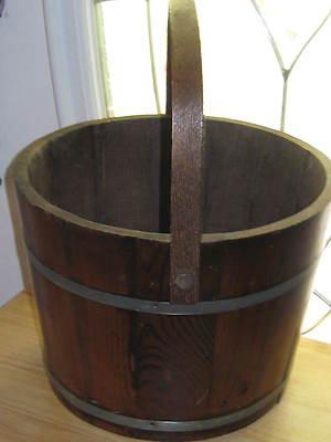 LC-649 Vintage/antique SAP BUCKET, wood; 11 " tall; 12" diameter