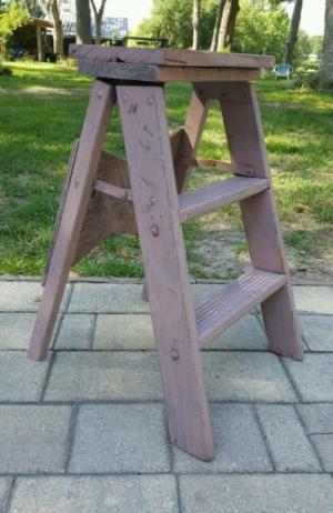 Vintage SHABBY Primitive Farmhouse Wood Step Ladder Stool Garden Bench