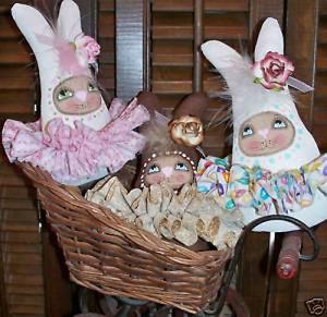 Primitive Folk Art Rabbit Doll Easter Bunny Ornies bowl filler Handmade OOAK