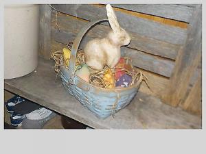 PRIMITIVE HC EASTER RABBIT BUNNY DOLL SHELF SITTER ORNIE BOWL FILLER