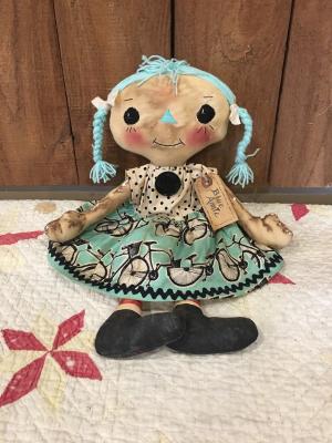 Primitive Blue Annie, folk art, Grungy, Handstitched, PRECIOUS OOAK
