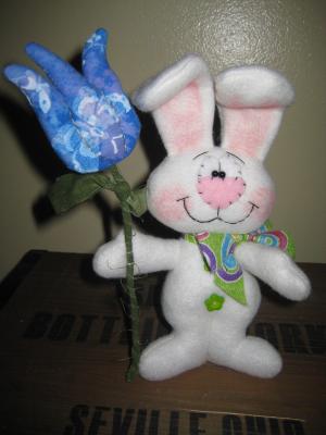 PRIMITIVE HC STANDING BUNNY RABBIT W/ TULIP DOLL ORNIE SHELF SITTER BOWL FILLER