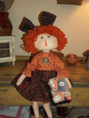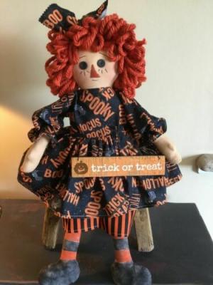 PRIMITIVE RAGGEDY ANN HAPPY HALLOWEEN ANNIE DOLL
