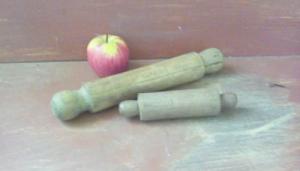 TWO AAFA 19TH c ROLLING PINS-BEAUTIFUL PATINA-ONE A CHILDS?